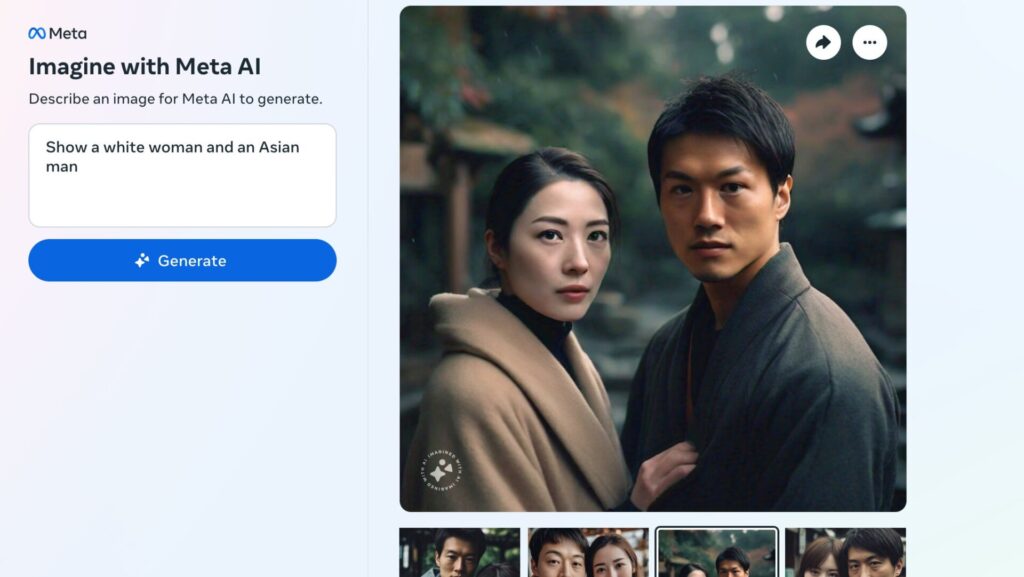Le générateur d’images IA de Meta a du mal à représenter un homme asiatique avec une femme blanche.